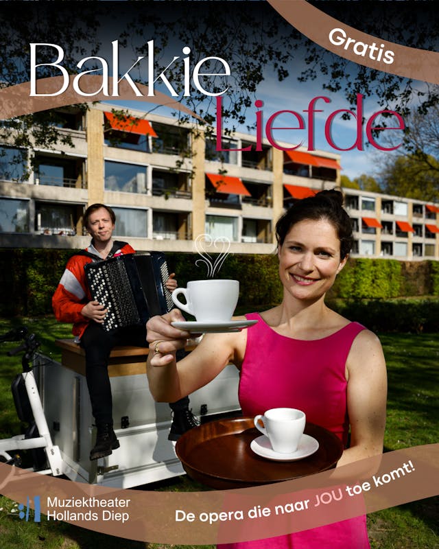 Bakkie Liefde is muziektheater zoals je het nog nooit hebt beleefd: dichtbij, interactief en midden in jouw eigen wijk. Geen dure tickets of grote schouwburgen, maar een intiem podium op straat, waar je zó kunt aanschuiven. Je wordt getrakteerd op prachtige zang, levendige scènes en misschien zelfs een kop koffie met een vleugje drama. Het is gratis, laagdrempelig en bedoeld voor iedereen. Jong en oud, liefhebber of nieuwsgierige voorbijganger. Dit halfuurtje theater laat je gegarandeerd met een glimlach achter.